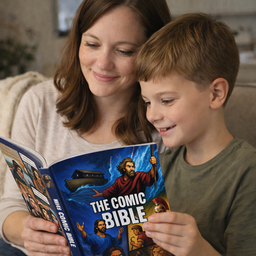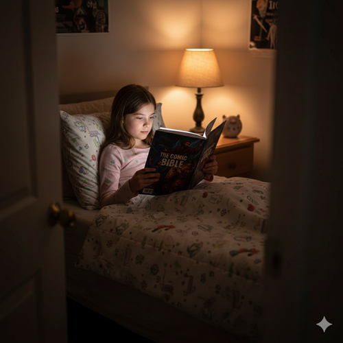 It's designed for kids ages 6–12, but the real question is: Has your child outgrown "baby Bibles" but can't connect with text-heavy Scripture? If they love graphic novels, manga, or visual storytelling—and traditional devotionals feel like pulling teeth this is built for them.